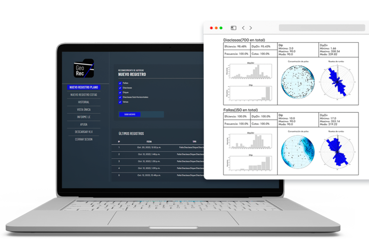 Hoy como parte de sus servicios y fruto de un proceso de investigación científica aplicada, crearon GeoREC, una suite informática que permite automatizar la extracción de datos (fallas, diaclasas, diques, entre otros) desde planos geológicos, los que se disponibilizan de forma centralizada en una plataforma digital, permitiendo relacionar avances de distintos planos y con esto concentrar toda las ampliaciones y obras de los frentes de mina.